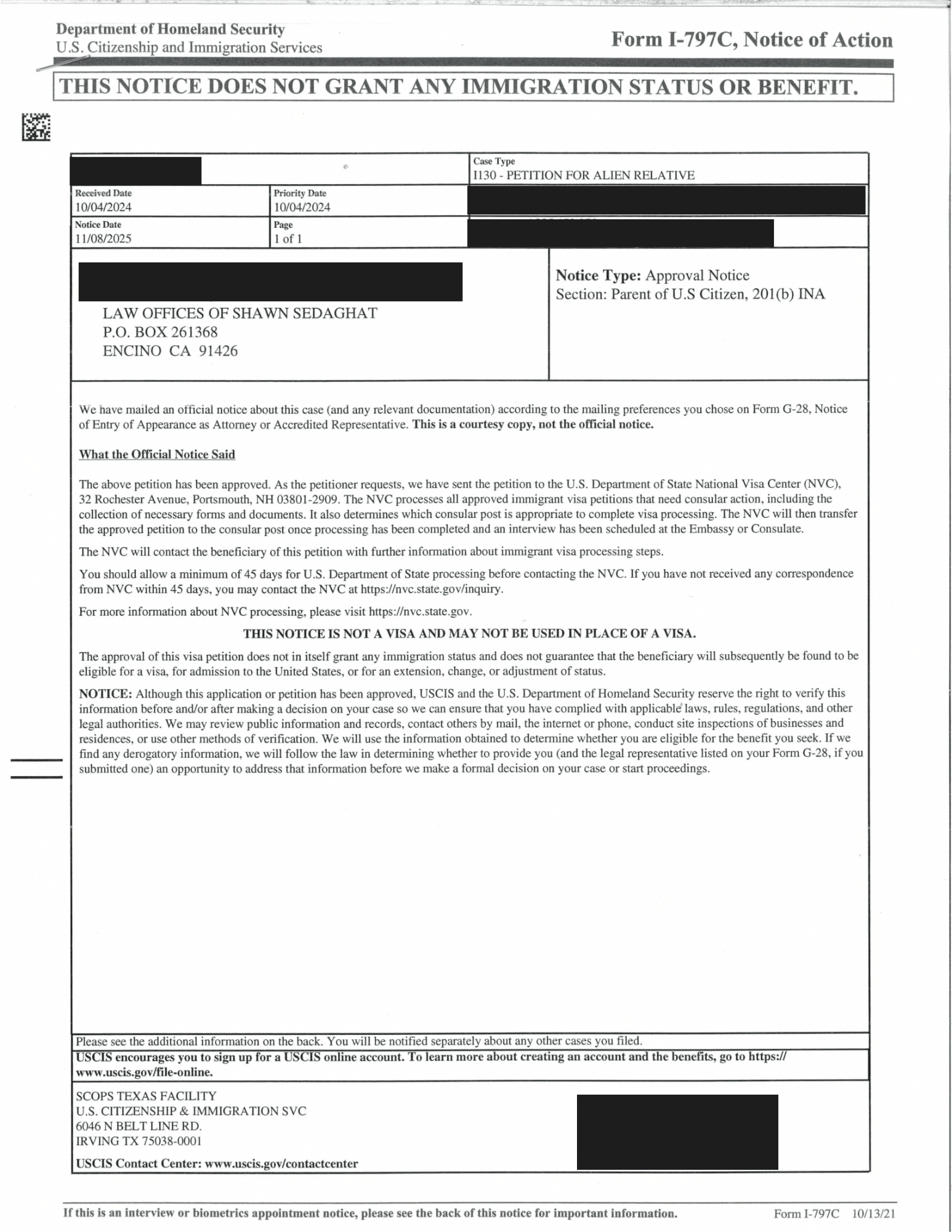 By accessing and using the sedaghatlaw.com website, you acknowledge and agree that the content provided herein is for general informational and educational purposes only and is not intended to be legal advice for any specific situation or case. The information on this site should not be construed as legal advice nor does it constitute an attorney-client relationship between you and any attorney associated with sedaghatlaw.com. Each legal situation is unique, and laws are constantly changing; therefore, visitors are encouraged to seek professional legal counsel for any legal matters or concerns. Your use of the site and its information is solely at your own risk. Sedaghatlaw.com, its affiliates, contributors, agents, or any other parties involved in the creation, production, or delivery of the content herein disclaim all liability for any damages, losses, or actions resulting from your access to, or reliance on, any information contained within the site or any linked external resources. No attorney-client relationship is formed by your use of this site, by your sending us an email, or by us responding to any email you send us. An attorney-client relationship can only be established through mutual agreement in a formal, written engagement letter between you and an attorney. By continuing to use sedaghatlaw.com, you acknowledge that you have read, understood, and agreed to these terms.